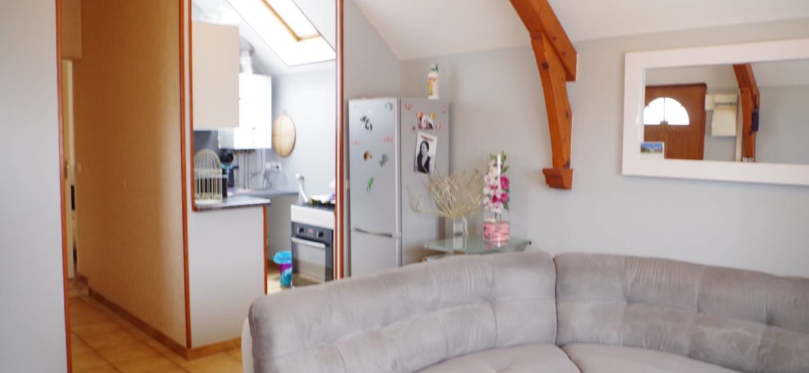 APPARTEMENT au premier et dernier étage avec entrée privative comprenant : Séjour avec coin cuisine aménagée et équipée, couloir desservant salle d'eau avec wc et une grande chambre .Lumineux, avec box privatif.