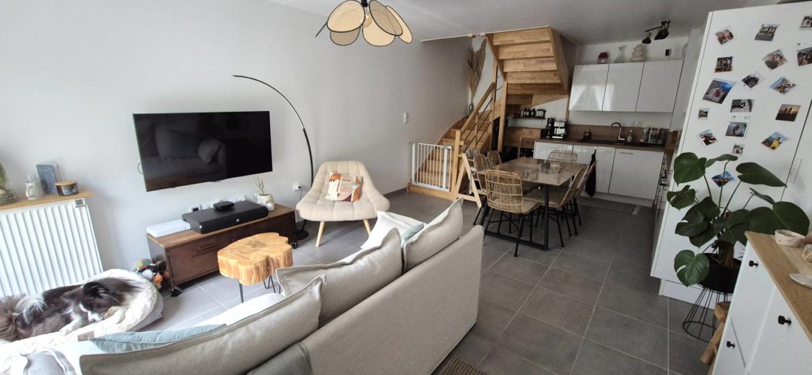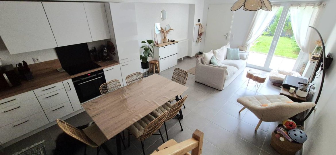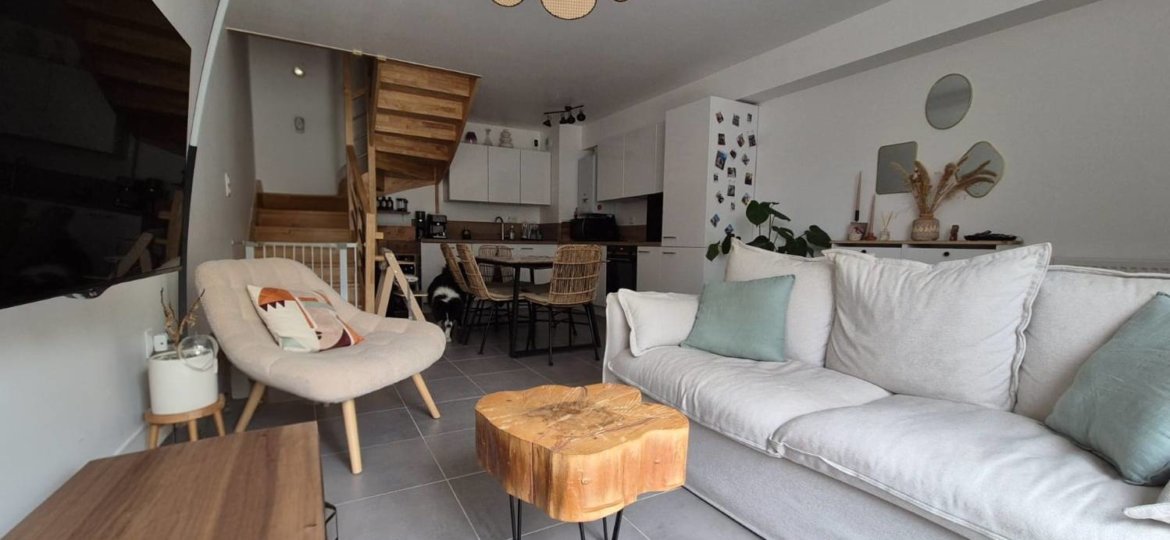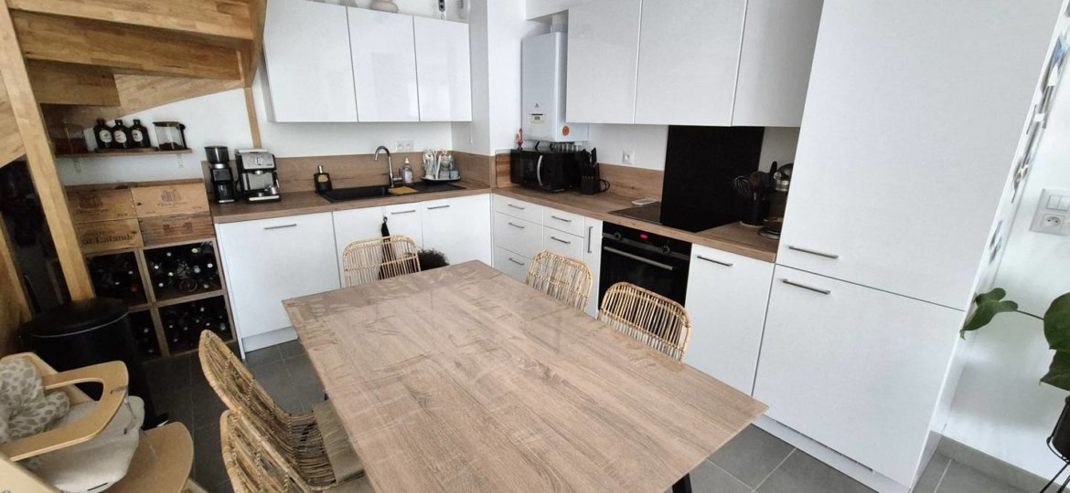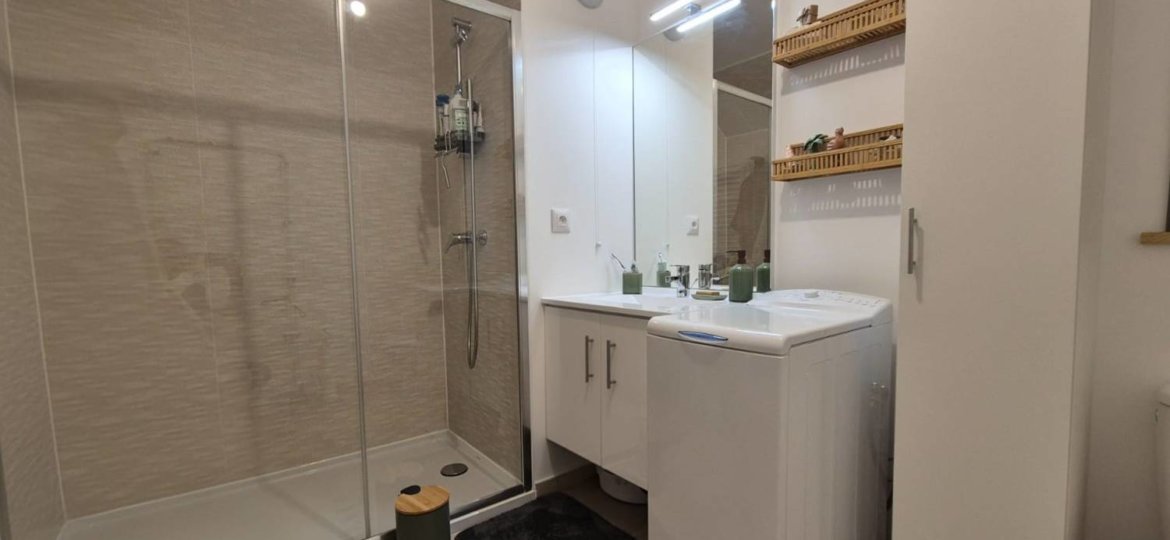 Grande pièce de vie avec cuisine ouverte, 2 chambres dont une avec salle d’eau privative, dressing et buanderie.