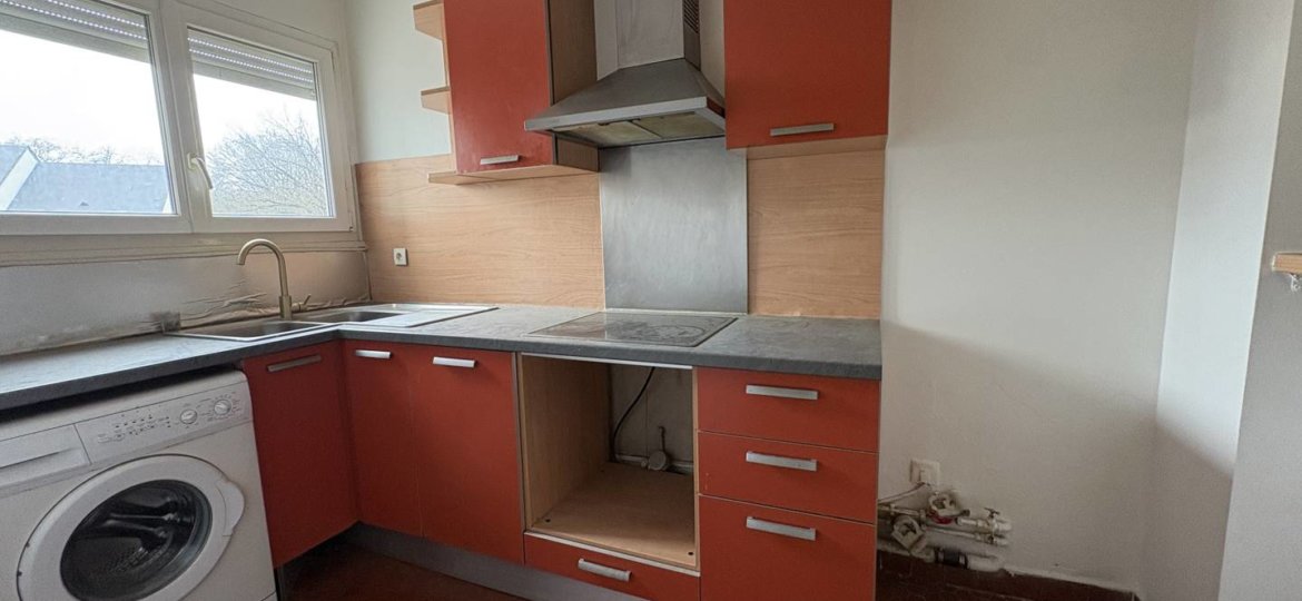 Au premier étage d'un immeuble de deux niveaux, il se compose d'une entrée, d'un grand séjour lumineux exposé ouest, d'une chambre, d'une cuisine indépendante, d'une salle de bain avec WC à rénover, et d'un dégagement avec placard offrant des rangements.