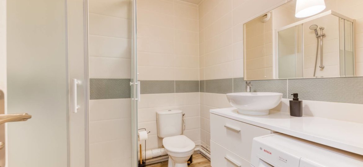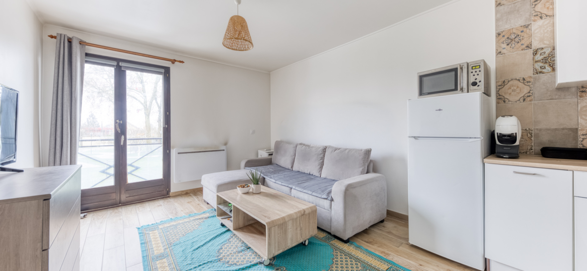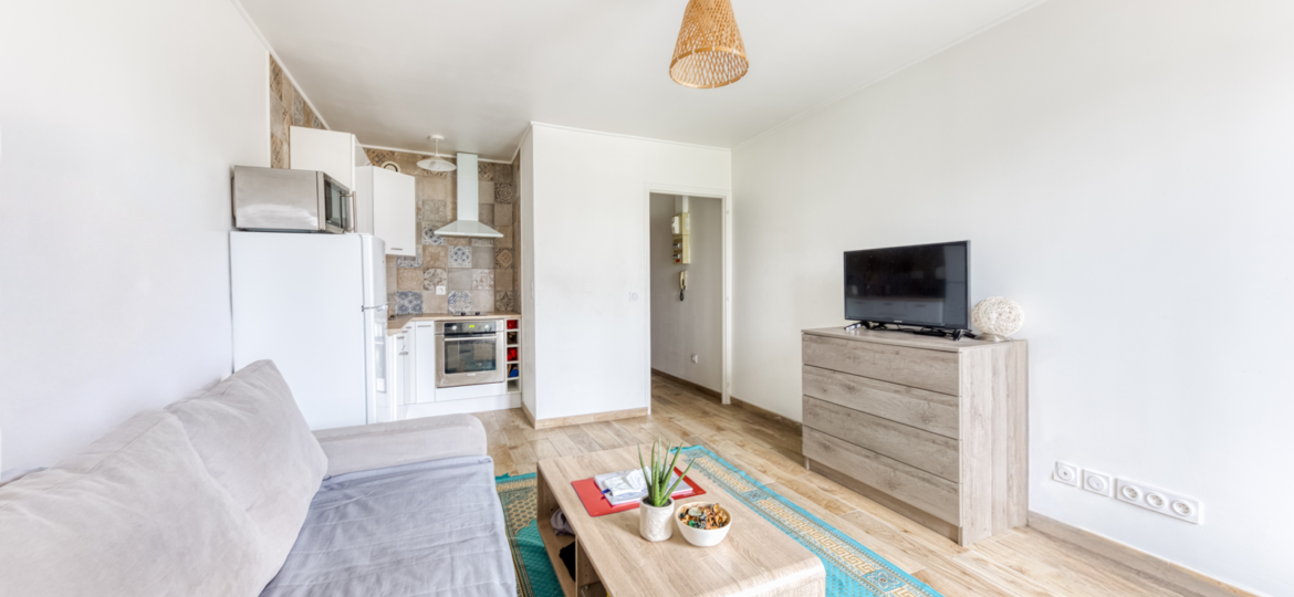 Réf: 2022 Studio rénové composé : entrée, salle d'eau avec WC, cuisine aménagée et équipée ouverte sur la pièce principale. Une place de parking privative complète ce lot. Exposition plein Sud. Taxe foncière : 850€/an Charges de copropriété : Environ 660€/an