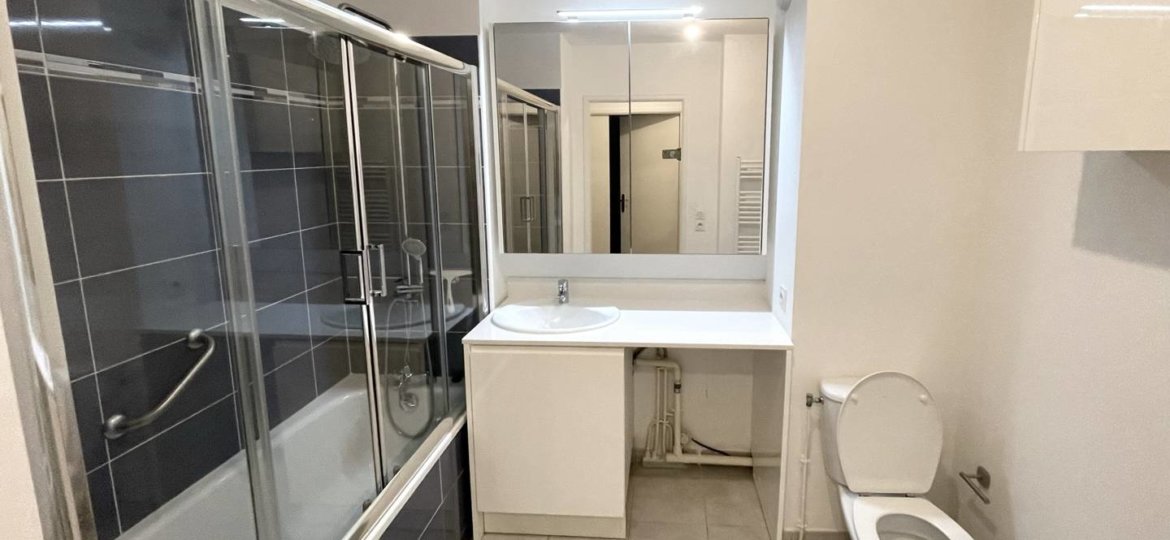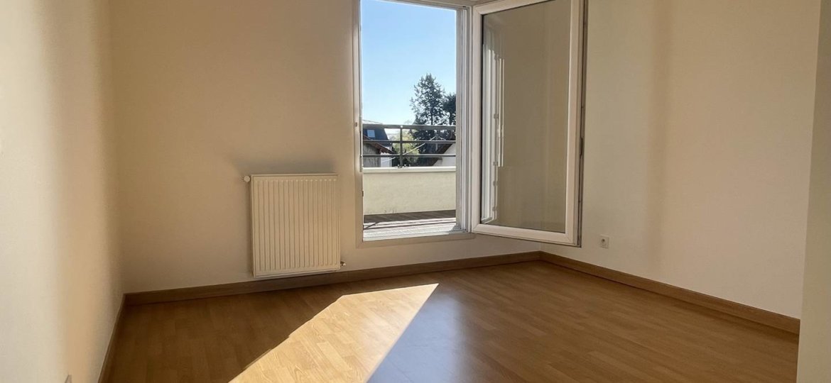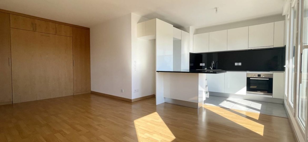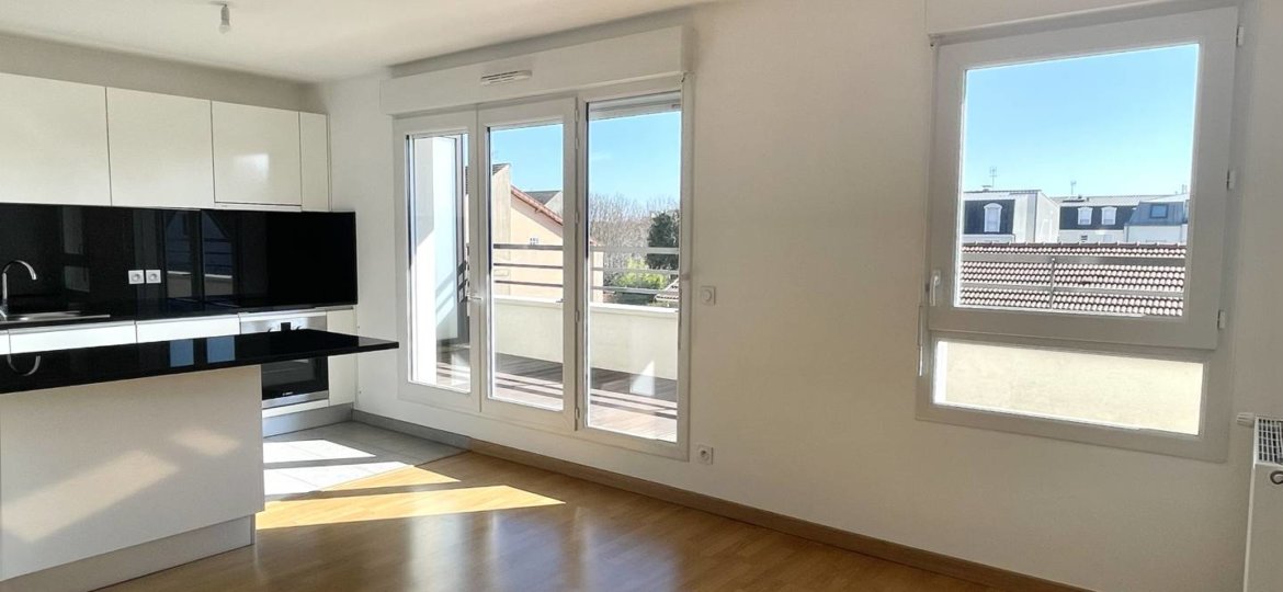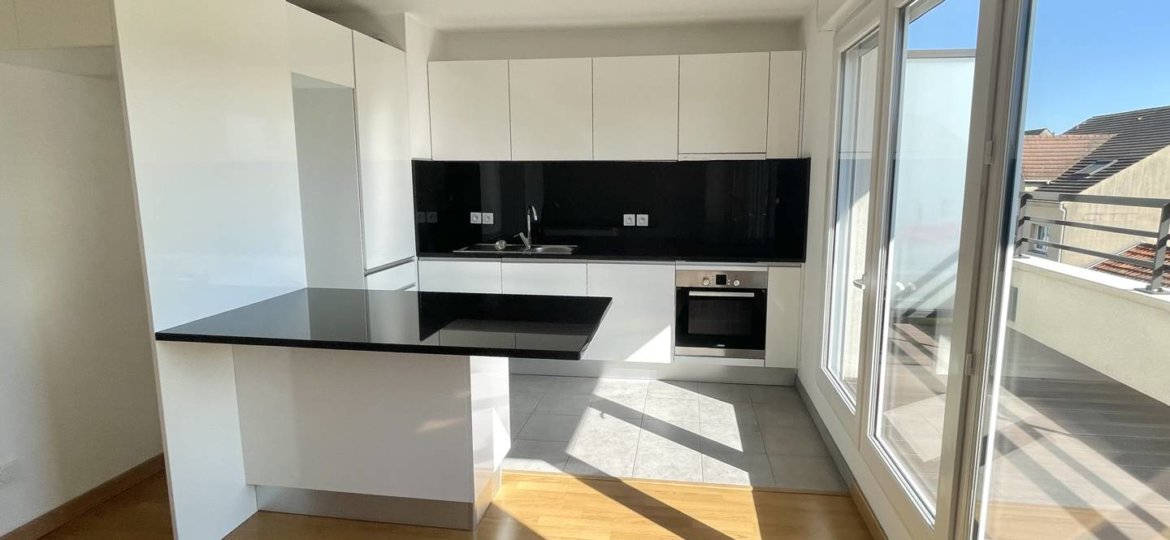 Magnifique 2 pièces de 50.15m² en parfait état à proximité de la gare et des commerces. L'appartement est composé d'une entrée, d'un spacieux séjour avec cuisine us, chambre avec placard et une salle de bains avec wc. Grande terrasse de 12.85m² donnant sur le séjour et la chambre. Place de parking privative en sous sol.