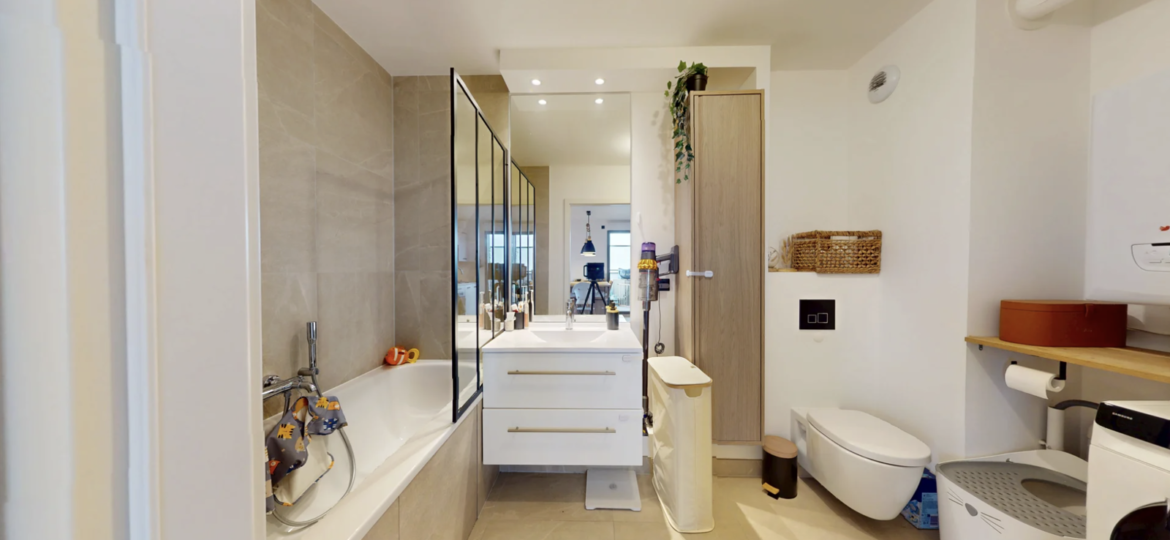 L'appartement dispose également d'une salle de bain avec WC, moderne et pratique. Idéalement situé à proximité immédiate de toutes commodités (écoles, gare et commerces), il facilite votre quotidien. Résidence neuve sous garantie décennale