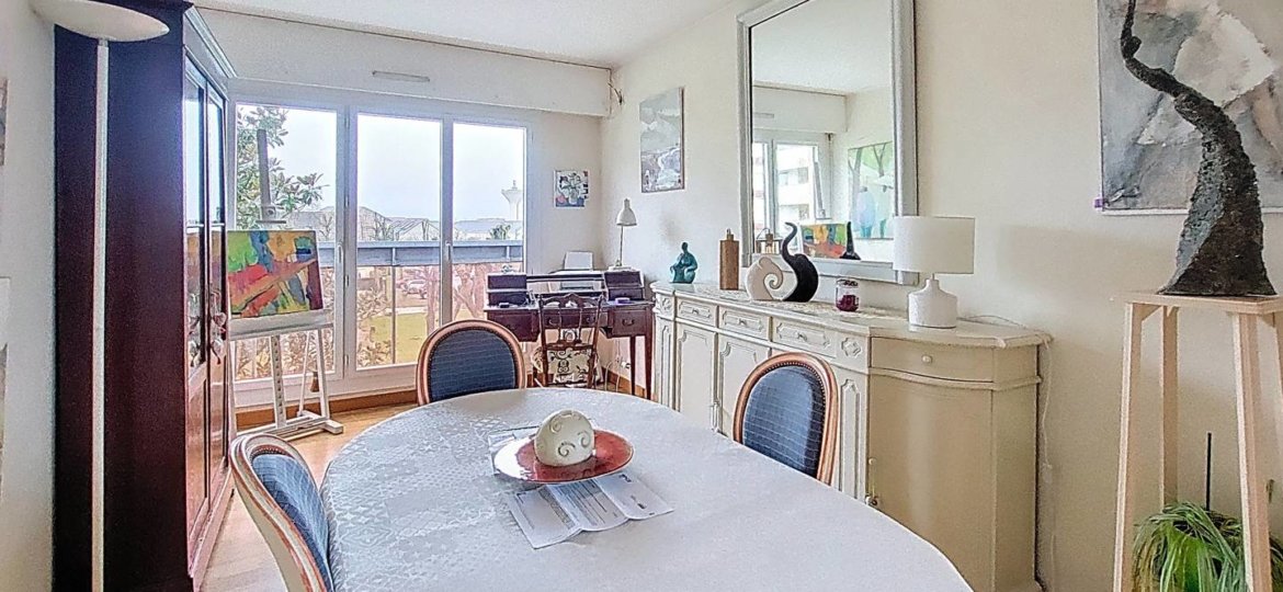 Bel appartement à vendre, lumineux et bien agencé, avec balcon et 2 places de parking extérieure. Situé en plein centre-ville de Roissy-en-Brie, à deux pas d’une école et des transports en commun. L’immeuble dispose d’un ascenseur. l’appartement comprend une grande entrée avec placards, séjour double, cuisine indépendante aménagée et équipée, cellier, wc indépendant, salle d'eau, 2 chambres.