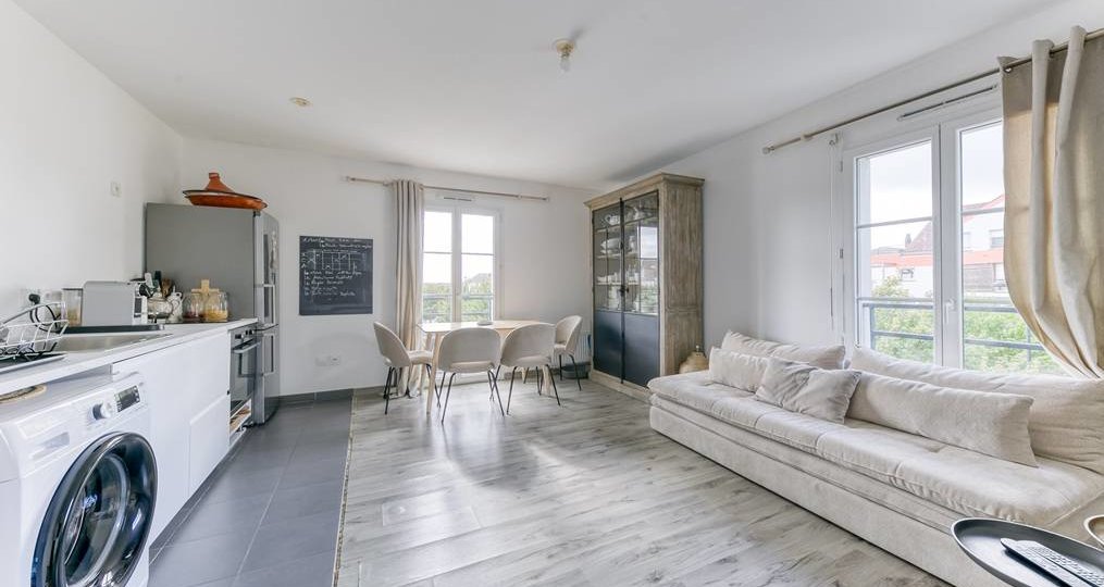 Dans une Résidence de Standing sécurisée construite en 2013 (Promoteur : ELGEA), appartement de 3 pièces principales, situé au 2 ème étage d'une superficie de 51,80 m² en Loi CARREZ, comprenant : grande entrée de 7 m² avec placard de rangements, beau Séjour de +20 m² avec cuisine ouverte, deux chambres (10,49 m² et 9,63 m²) dont une avec placard, Salle de bains, WC indépendant. Deux places de parking privatives couvertes. APPARTEMENT VENDU LOUE avec un bail locatif depuis le 20/08/2018 (très bons locataires en place avec un bail de 3 ans renouvelable), loyer 831 € / mois dont 135 € de charges.