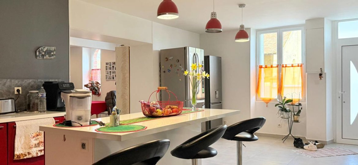 Maison Briarde rénovée : Le rez-de-chaussée se compose d’une cuisine équipée de 26 m², contemporaine avec îlot central, ouverte sur un agréable séjour de 31 m², agrémenté d’un poêle à bois, parfait pour des moments conviviaux. Une arrière-cuisine pratique complète cet espace et donne accès à une cave. une chambre 18 m² ainsi qu’une salle d’eau avec WC. À l’étage, une spacieuse pièce palière dessert une suite parentale 29 m² avec placards muraux et salle de bain ouverte sur la chambre avec baignoire. Deux autres chambres de 15 et 13 m² ainsi qu’une salle de bain avec WC. Au 2ème étage, un grenier. Deux dépendances. L’ensemble est édifié sur un terrain d’environ 600 m².