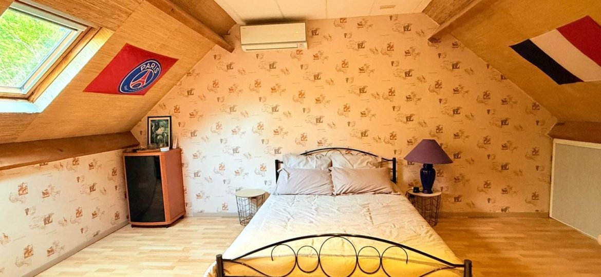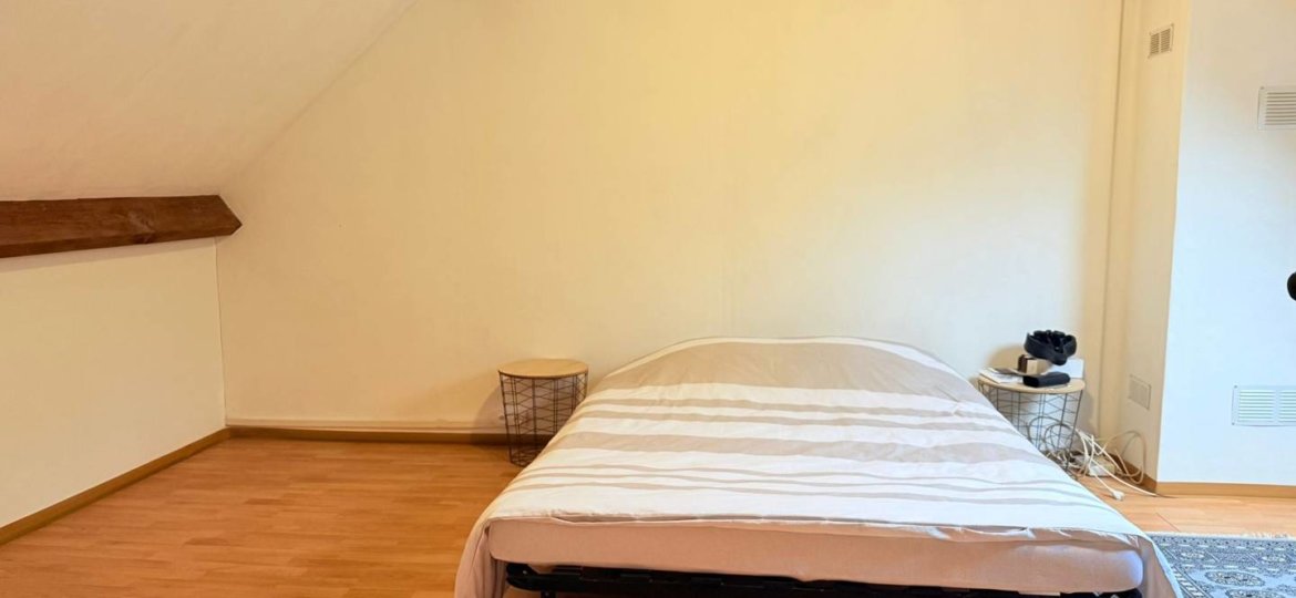 A l'étage : un palier dessert deux belles chambres, une salle de bains avec wc ainsi qu'une petite pièce de rangement pouvant servir de dressing