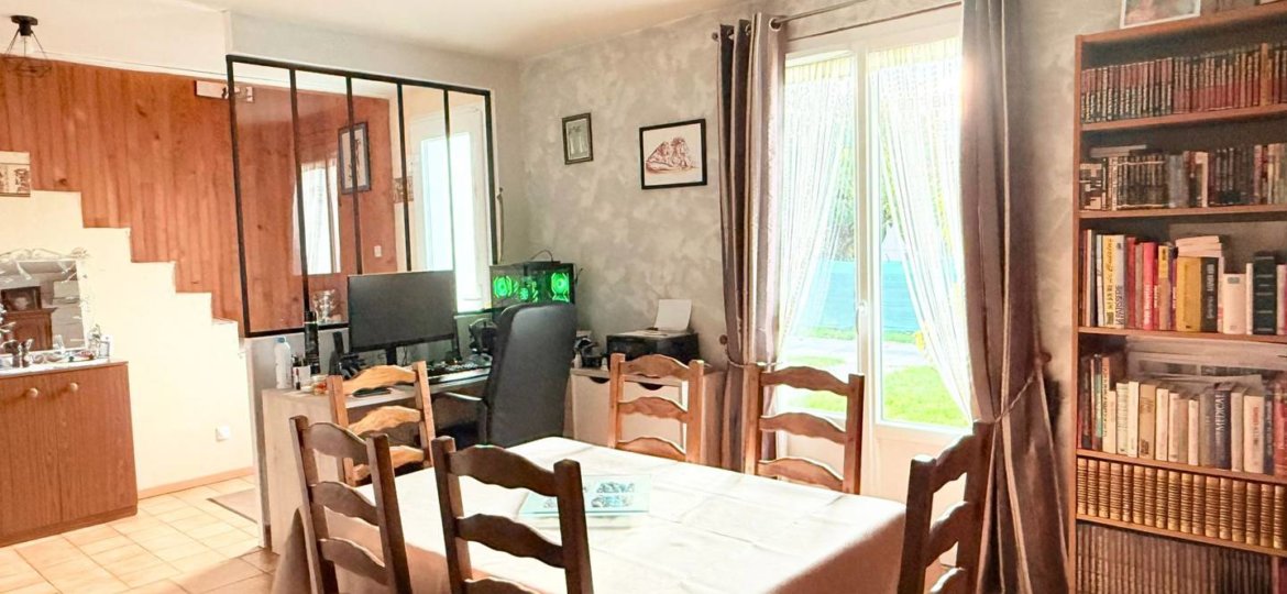 Au rez de chaussée : entrée, salon/salle à manger, cuisine aménagée ouverte sur le séjour, deux chambres (dont une pouvant être utilisée comme bureau), salle d'eau wc, ainsi qu'un accès direct à la buanderie et au garage.