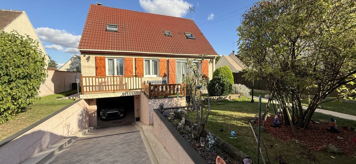 À 5 min de la gare ( ligne P ) et des écoles, dans un quartier calme, découvrez cette maison fonctionnelle avec sous-sol total.