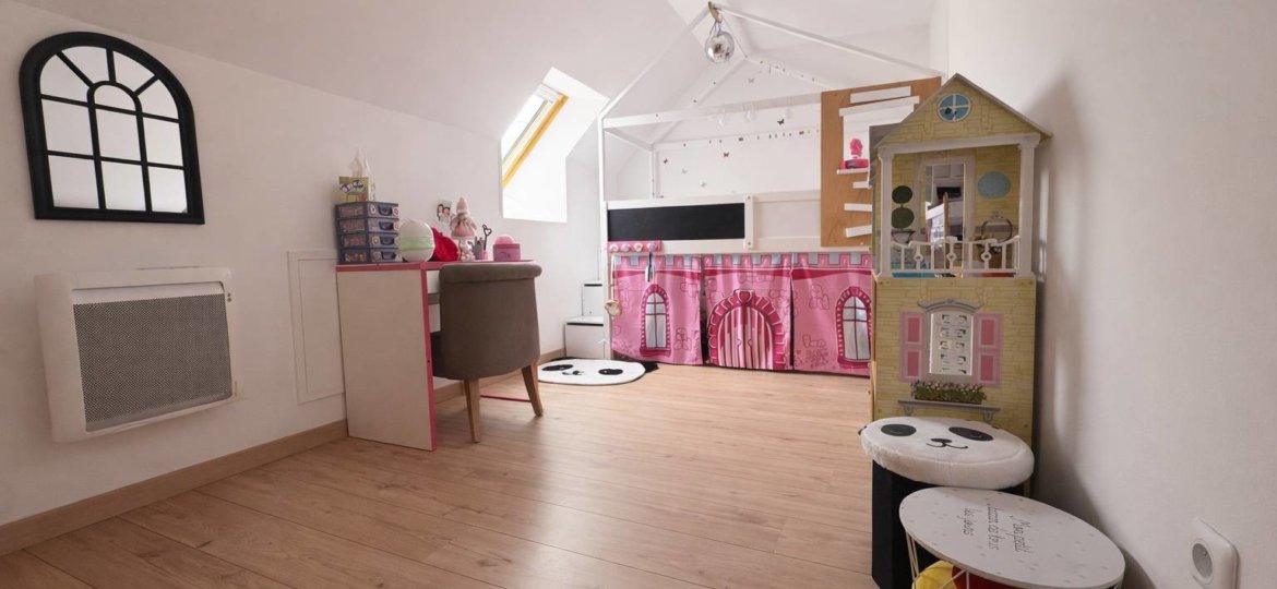 A l'étage: un dégagement desservant un dressing ainsi que 2 chambres sous combles avec une belle surface au sol.