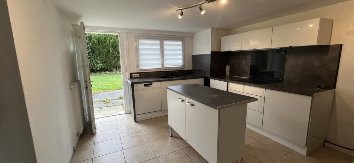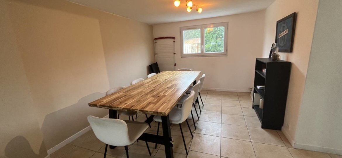 Au rez-de-chaussée, une entrée dégagée qui mène à une cuisine équipée ouverte, et un séjour-salon . Avec un WC indépendant