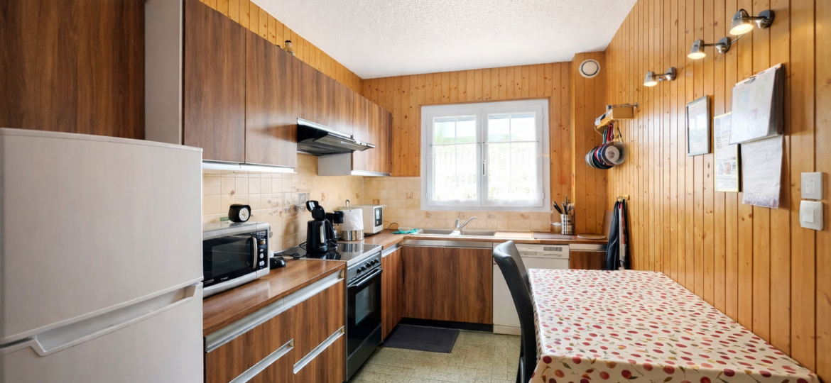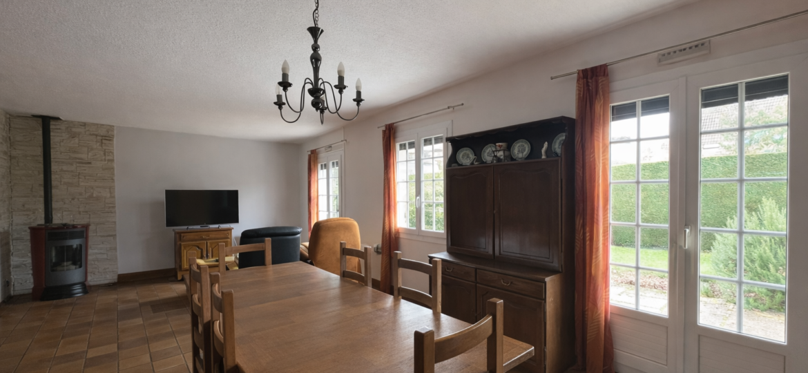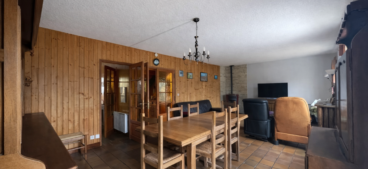 Elle se compose au rez-de-chaussée d’une grande entrée, d’un double séjour lumineux avec poêle à granulés, une cuisine aménagée et équipée (possibilité ouverture sur le séjour). Une chambre, une salle d’eau avec wc, offrant une vie de plain-pied.