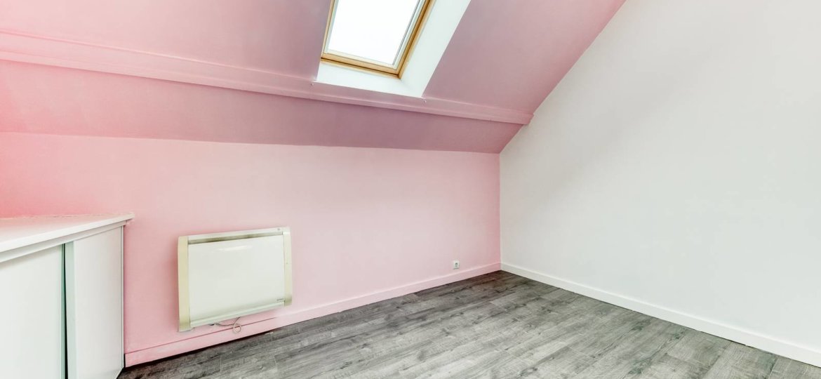 A l'étage, palier avec rangement, 2 chambres, WC avec lave mains.