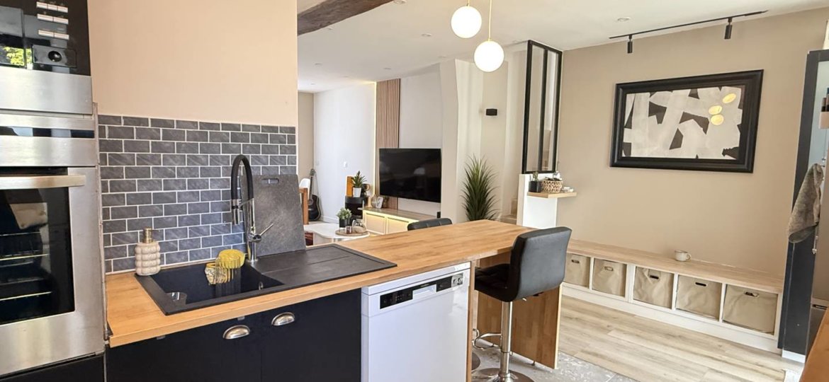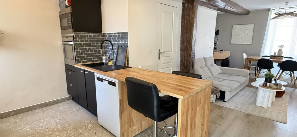 Dès l'entrée, vous découvrez une cuisine aménagée et équipée ouverte sur un salon convivial et lumineux, créant un espace de vie chaleureux et fonctionnel. Une salle d'eau et un WC indépendant complètent le rez-de-chaussée.