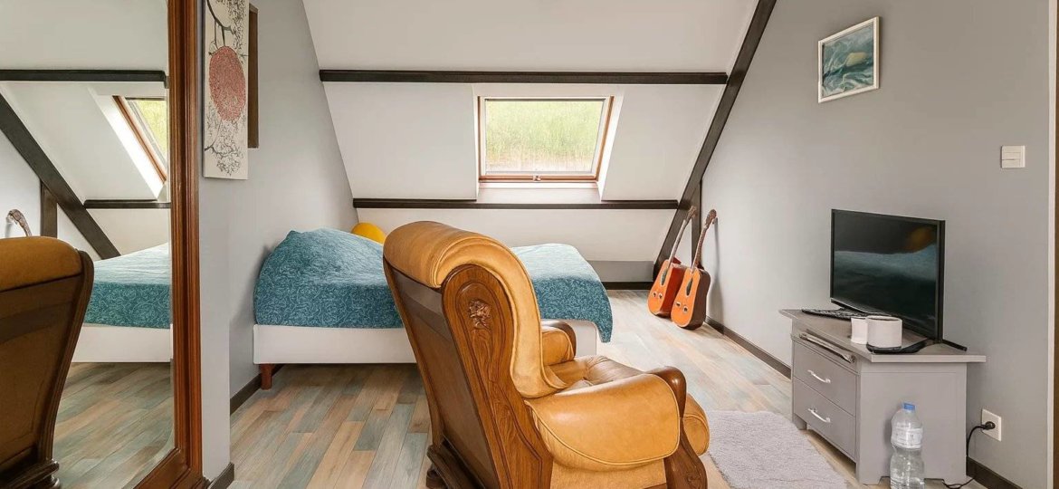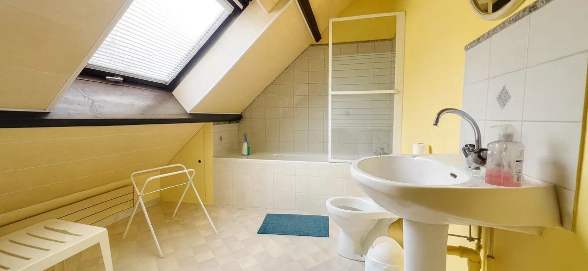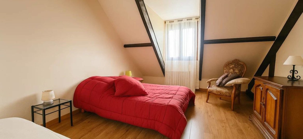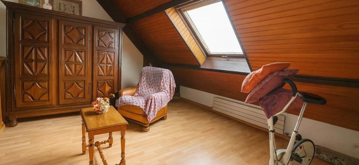 À l’étage, une spacieuse pièce palière (4ème chambre possible) dessert deux grandes chambres, dont une de près de 24 m² au sol, ainsi qu’une salle de bains avec WC. La maison est élevée sur un sous-sol total avec une très belle hauteur, offrant un grand garage, un espace buanderie et de nombreux rangements.
