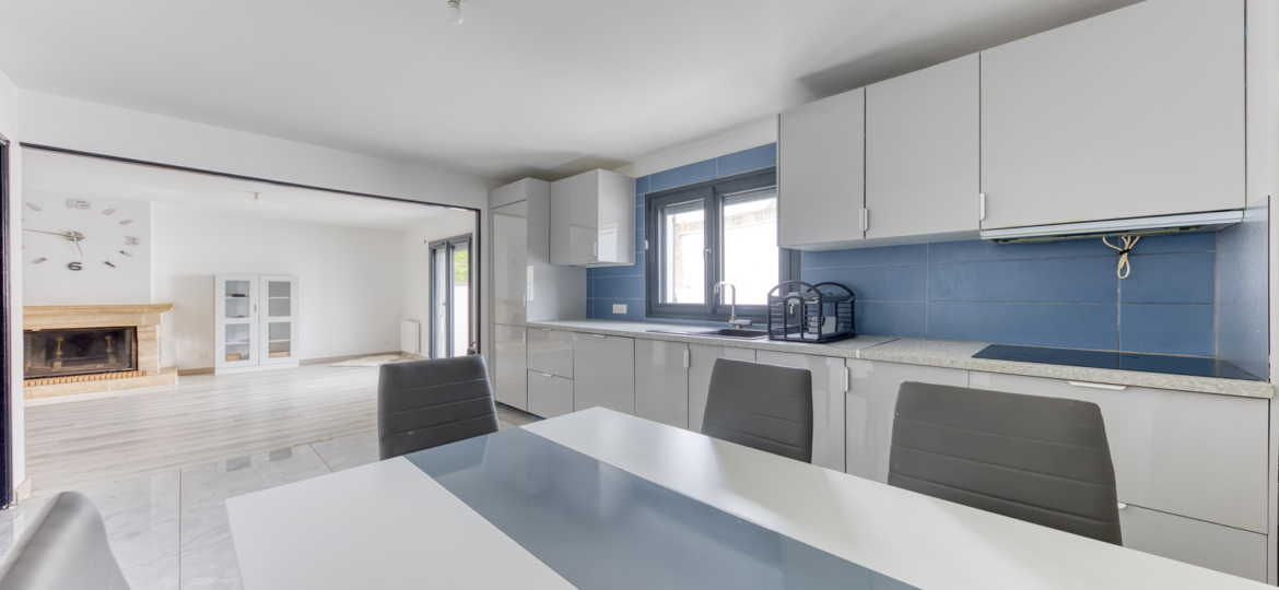 MAISON A VENDRE SITUEE DANS UN QUARTIER PAVILLONNAIRE RECHERCHE D'OZOIR LA FERRIERE A PROXIMITE DU CENTRE-VILLE, DE CONSTRUCTION INDIVIDUELLE ET D'UNE SUPERFICIE UTILE DE 150M², RECEMMENT RENOVEE, vous proposant au rez-de-chaussée une vaste entrée, une belle pièce à vivre traversante de 42m² agrémentée d'une cuisine dinatoire entièrement équipée, une chambre et un wc. A l'étage, le palier dessert trois autres chambres dont une suite parentale de 18m² pourvue d'une salle d'eau, une autre salle de bains et un wc.