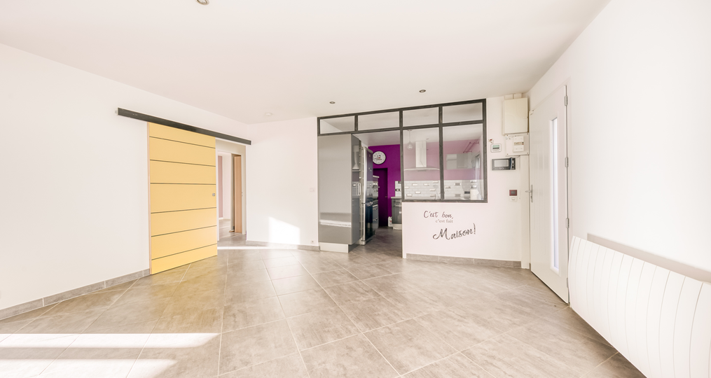Maison, de PLAIN PIED, totalement indépendante, d'une superficie de 75 m² habitables, comprenant : Entrée, Séjour double de + 38 m², cuisine ouverte (avec une verrière) aménagée et équipée de + 9 m², dégagement, deux chambres (11 m² et 9 m²), Salle d'eau avec un grand receveur de douche, WC indépendant. Nombreux rangements. Grand garage attenant de + 26 m² avec espace buanderie et une belle pièce au dessus du garage aménagée en chambre/Salle de jeux. Le tout sur un terrain exposé plein Sud d'une contenance totale de 569 m². Le plus : une grande allée bétonnée devant la maison offrant la possibilité d'y rentrer et d'y stationner plusieurs véhicules.