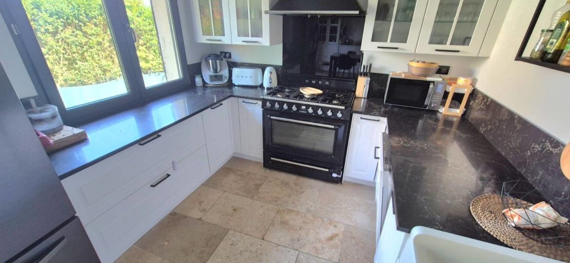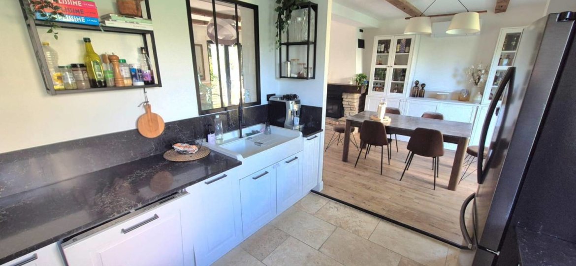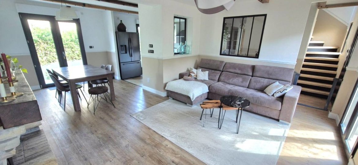 Charmante maison entièrement rénovée sur sous-sol total, édifiée sur un terrain de 418 m², offrant de beaux volumes. Elle se compose au rez-de-chaussée d’une entrée, d’un salon avec poêle à granulés, d’une salle à manger, d’une cuisine aménagée et équipée, de deux chambres, d’une salle de bain et d’un WC, permettant une vie de plain-pied. À l’étage, trois chambres supplémentaires dont une suite parentale avec douche et rangements, ainsi qu’un WC. Le sous-sol total offre de nombreuses possibilités (garage, atelier, stockage). Double accès pour stationnement. Climatisation réversible, bon DPE, tout-à-l’égout. Accès à un parc privé à proximité. Proche écoles et commerces.