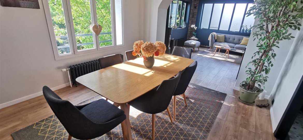 Maison unique sur la commune tout d'abord pour sa partie meulière authentique, puis ensuite pour son agrandissement moderne et harmonieux, mais enfin pour son écrin de verdure à 2 pas de la gare RER E.