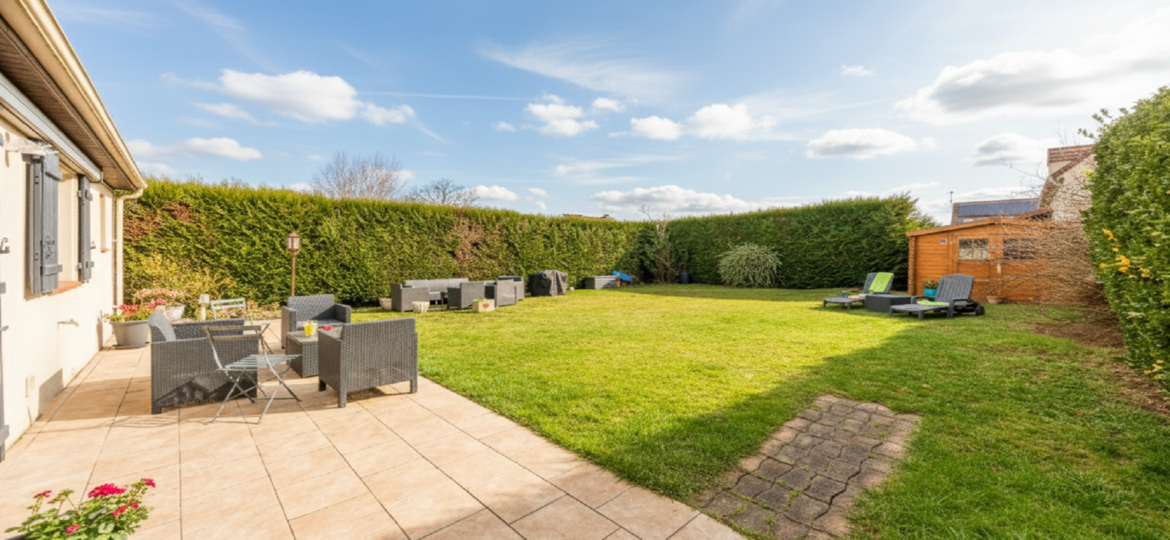 Cette agréable maison familiale est érigée sur un terrain de 410 m² disposant d'un grand jardin exposé plein ouest sans aucun vis-à-vis.