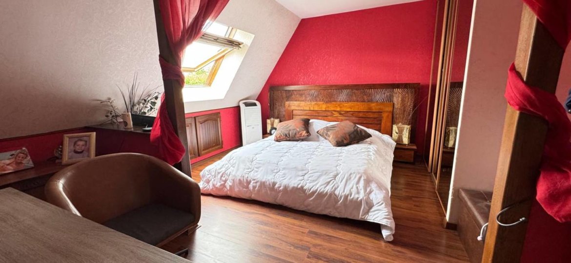 Un accès direct au garage. À l’étage : Un dégagement desservant trois belles chambres avec placards intégrés, Une salle de bains, Un second WC indépendant