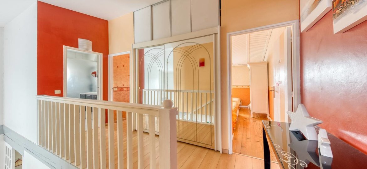 A l'étage, le palier équipé de rangements dessert trois chambres et une belle salle d'eau.