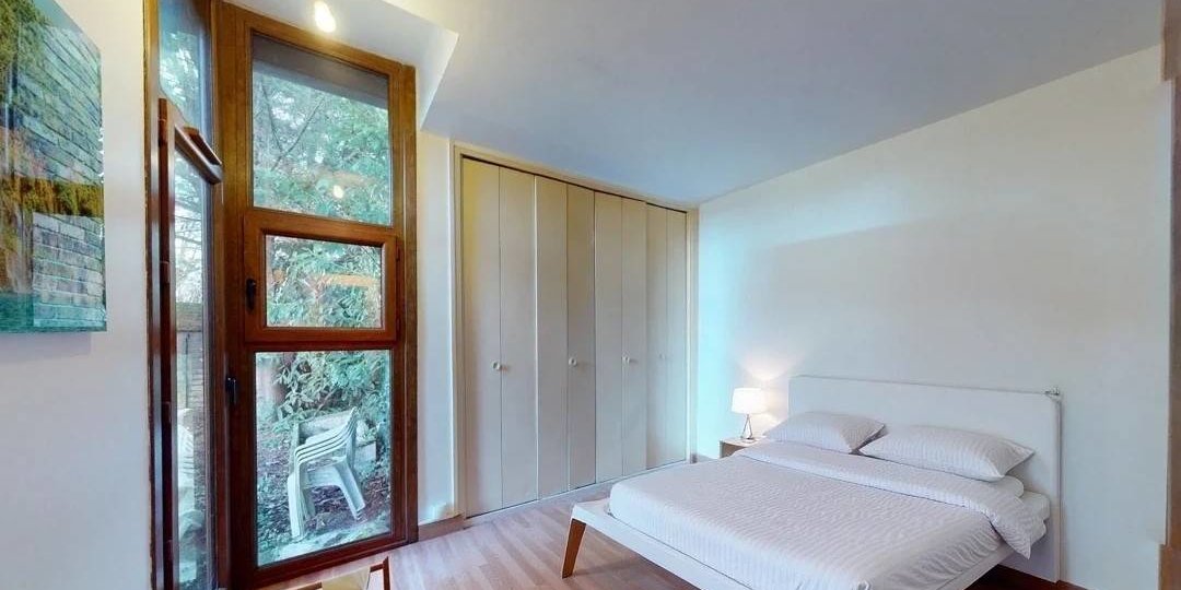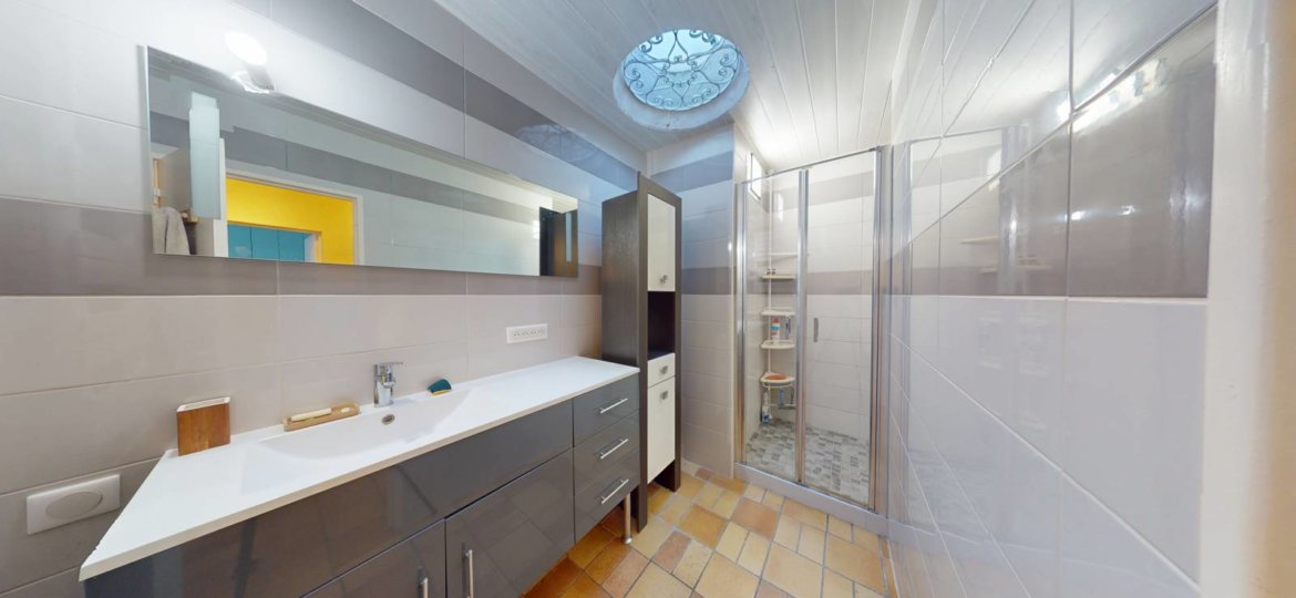 Le couloir distribue deux belles chambres, dont deux disposent de rangements intégrés et d'un bureau, d'un accès direct au jardin, offrant confort et praticité au quotidien. Une salle d'eau et des WC séparés, tous deux pourvus de puits de lumière, viennent compléter l'espace nuit.