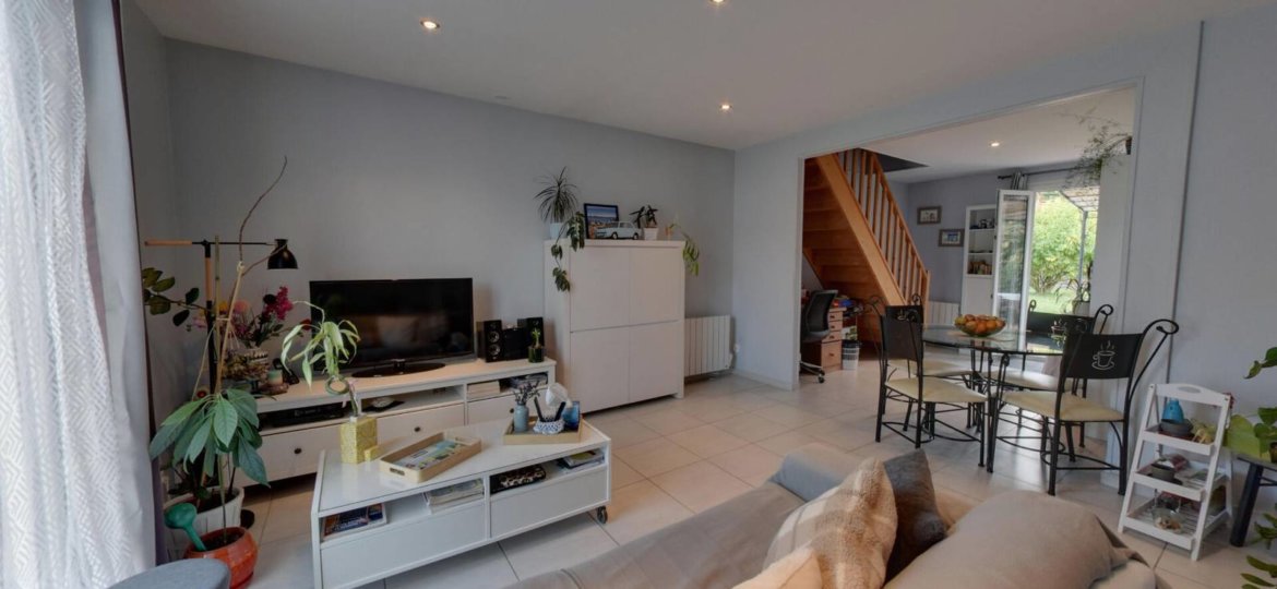 Pavillon de plain-pied totalement individuel situé en limite séparative, dans une impasse proche de toutes les commodités : écoles, gare, parc et commerces.. Il vous propose : entrée, séjour, cuisine indépendante, 2 chambres, salle d'eau et WC. Garage et terrasse.. Terrasse et garage attenant. Les combles ont été aménagés en 2 chambres.