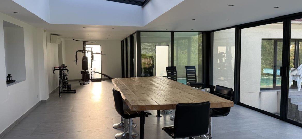 À vendre – Belle maison familiale de plain-pied (2006) sur terrain arboré de 4 640 m² avec piscine couverte et chauffée.