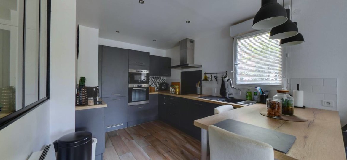 Il se compose d'une entrée séparée avec placard, d'une cuisine aménagée et équipée s'ouvrant sur le séjour et d'un WC. Pour la partie nuit, vous trouverez deux chambres avec placards, une salle d'eau avec espace buanderie et des rangements.