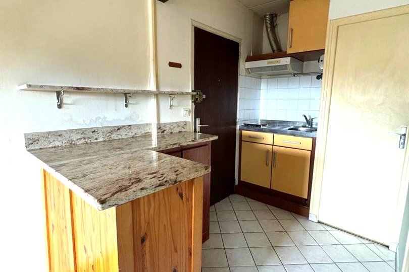 Réf: 115 Dans une petite copropriété de 1977 avec faible charges, un appartement de 32 m² au sol au 2ème et dernier étage, comprenant une entrée avec espace cuisine, un salon, une chambre et une salle d'eau avec wc. Une place de parking. Prévoir rafraîchissement.