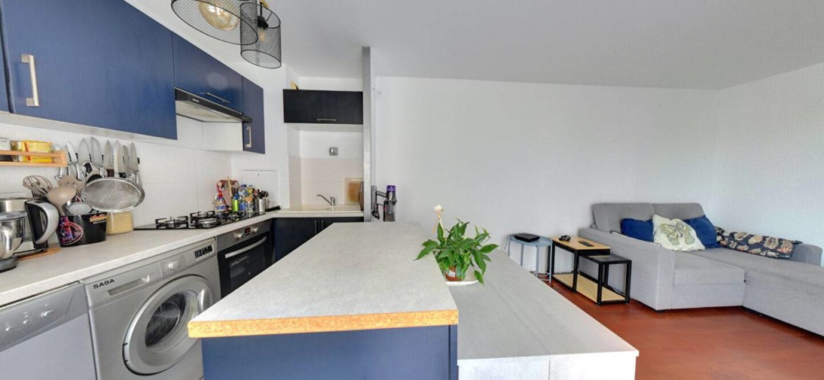 Dès l'entrée, vous serez accueilli par un hall desservant une agréable pièce de vie d'une superficie d'environ 23 m². Celle-ci intègre une cuisine américaine entièrement aménagée et équipée. Le séjour s'ouvre sur un large balcon exposé plein Ouest, idéal pour profiter des belles journées ensoleillées.