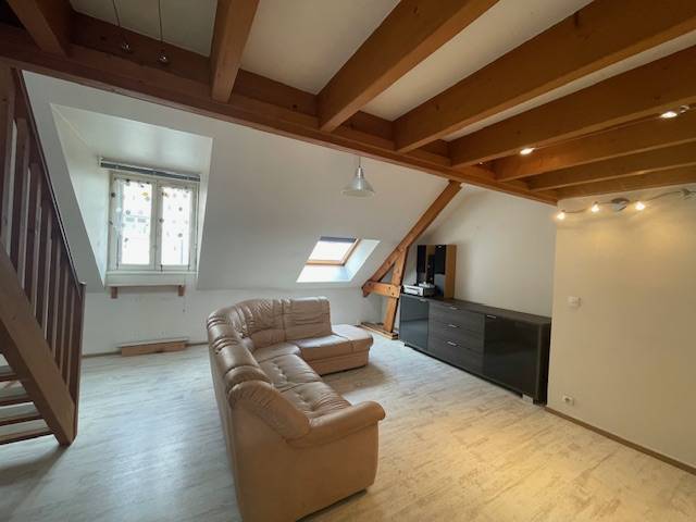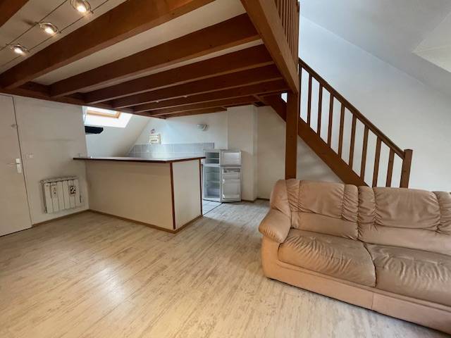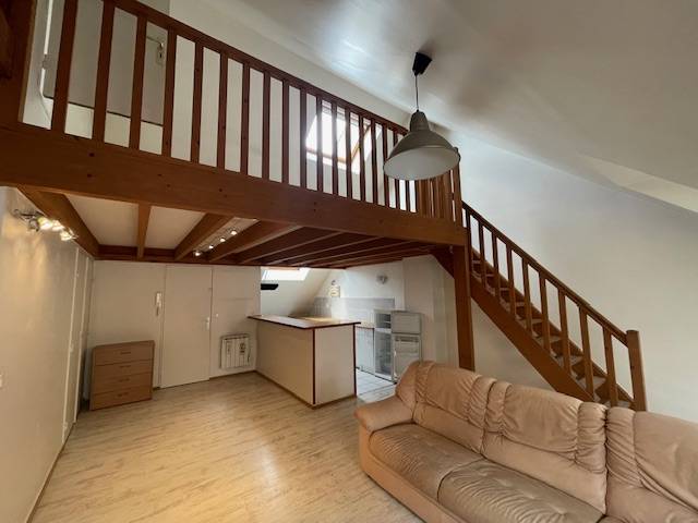 Au second et dernier étage d'une petite résidence, un appartement comprenant entrée, une chambre, salle d'eau, WC, cellier, cuisine ouverte sur séjour en cathédrale. Une pièce en mezzanine.