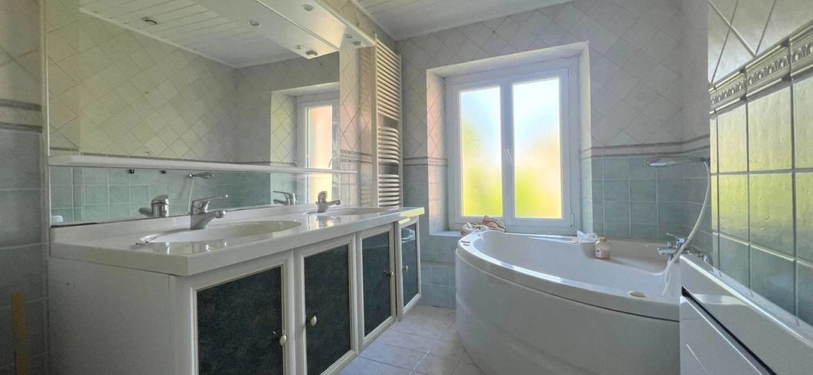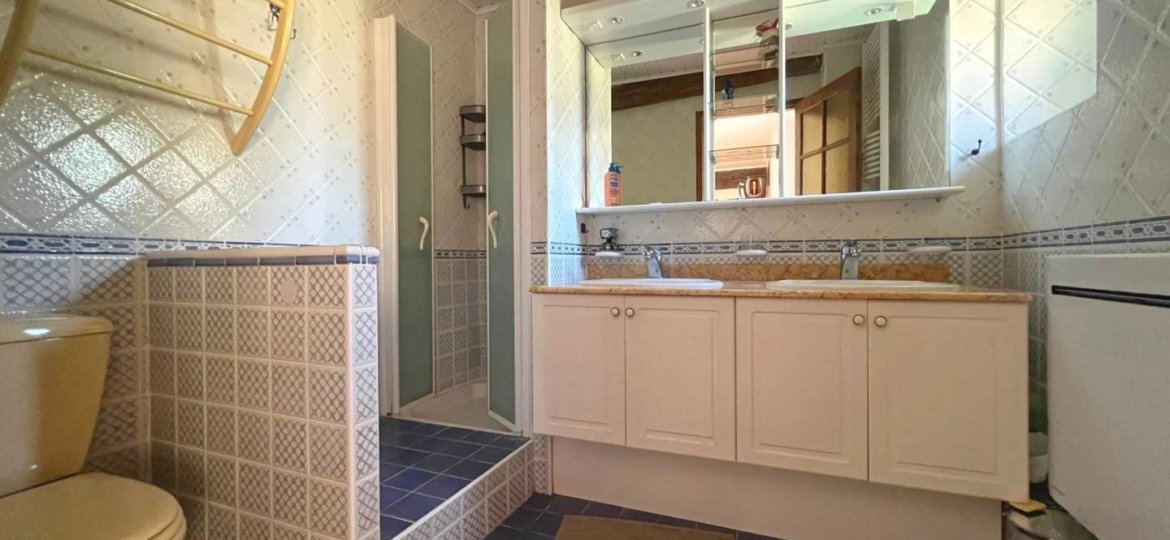 Une salle de bains mixte.