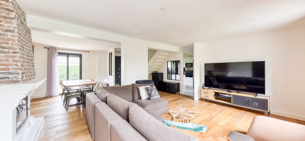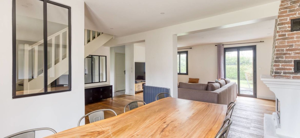 Une maison individuelle située en impasse, sans nuisances, comprenant : entrée, salon séjour, cuisine équipée et aménagée, palier donnant sur un bureau, W.C, buanderie. A l'étage : palier, 4 chambres, salle d'eau, W.C.