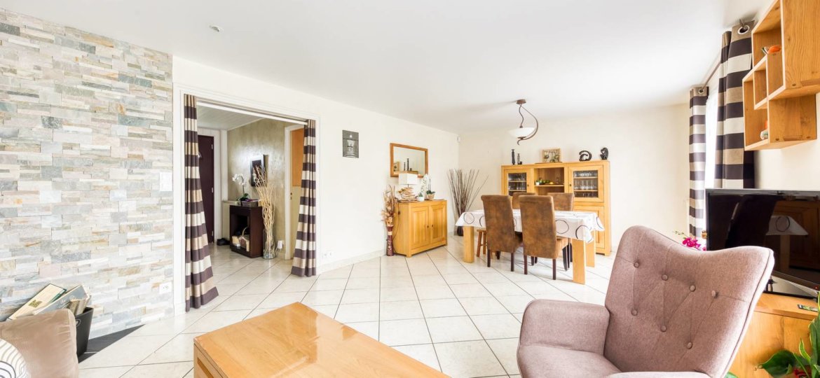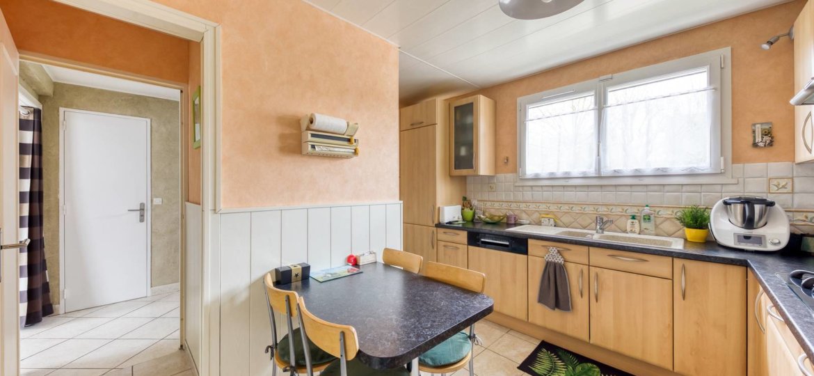 Une maison située dans le quartier du Bouquet, proche écoles, elle comprend : une entrée, un salon séjour avec poêle à bois, une cuisine équipée et aménagée, W.C, grand garage. A l'étage : un dégagement donnant sur 3 chambres, un bureau, une salle de bains avec douche, W.C. Combles aménageables. Le tout sur 297m² de terrain.