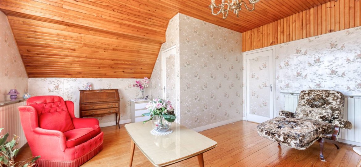 A l'étage, un palier desservant 2 chambres dont une avec une cuisine , et une avec une salle d'eau.