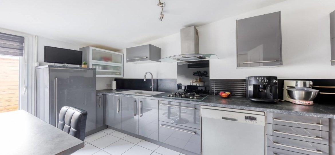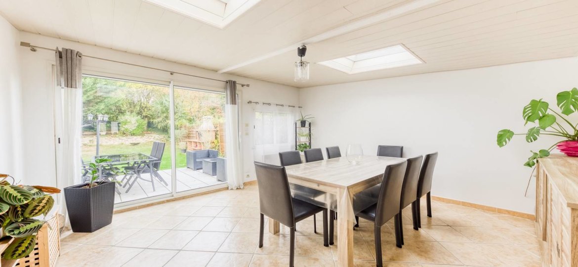 MAISON A VENDRE, AUX PRESTATIONS SOIGNEES DE QUALITE ET TRES BIEN ENTRETENUE, SITUEE DANS UN ENVIRONNEMENT VERDOYANT PROCHE DES ECOLES ET DE LA GARE, proposant une vaste entrée, un double séjour donnant sur une belle véranda, une cuisine aménagée et équipée agrémentée d'un coin repas et ouvrable sur le séjour, trois chambres toutes pourvues de placards, une salle d'eau, un wc, et un grand garage attenant.