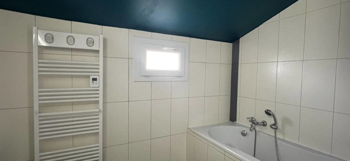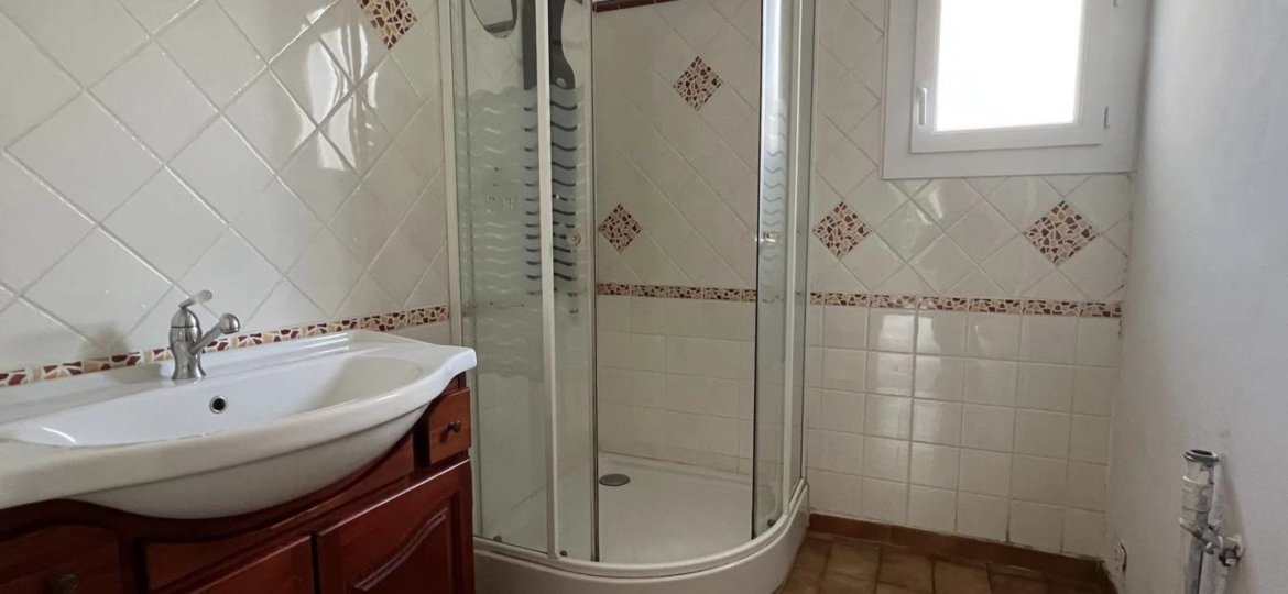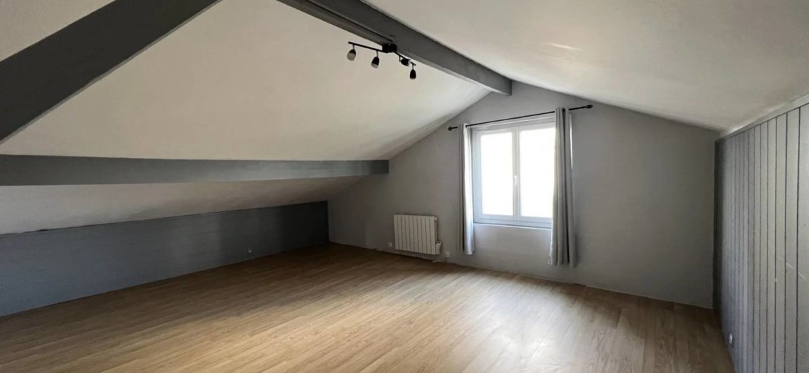 A l'étage : 3 chambres dont une de 25m² au sol, salle de bains avec wc